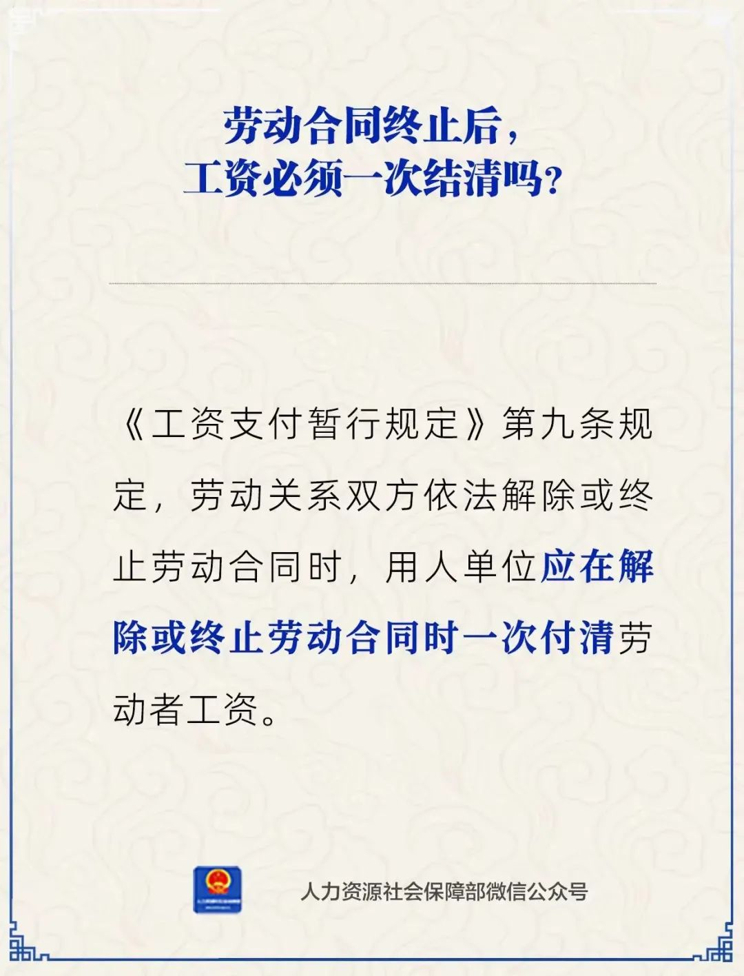 【人社日课·】解除或终止劳动合同,工资要一次付清吗?